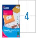 Étiquettes autocollantes blanches compatibles avec toutes les imprimantes à jet d'encre, laser et copieurs disponibles sur le marché. Technologie anti-bourrage. Excellent rendu d'impression. Certains formats sont adaptés au service « Mon timbre en ligne ». Planche au format A4. Boîte de 100 feuilles. Produit certifié FSC.