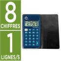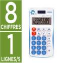 Calculatrice de bureau à 8 chiffres. Touches en plastique. Touches on/off, racine carrée, pourcentage, addition et soustraction de mémoire. Dimensions : 127 x 105 x 24 mm. Fonctionne avec des piles et l'énergie solaire. Présentoir de 10 calculatrices, coloris assortis.