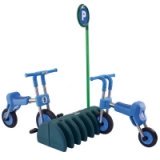 Drôle de carrousel qui remet en question la capacité des enfants à se coordonner, compte tenu que les roues peuvent tourner dans tous les sens.