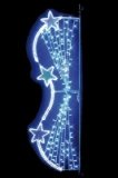 Décor poteau irisant, réalisé avec de la guirlande LED bleue et du cordon lumineux LED blanc.