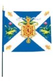 Attention : Un drapeau est cloué sur une hampe bleue. Un pavillon est à hisser en haut d'un mât.