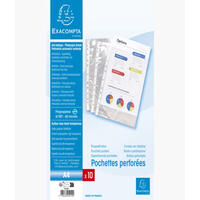 En polypropylène. Couverture flexible de 40/100ème, sauf pour les protège-documents de 60 pochettes (60/100ème). Pochettes fixes de 4/100ème. Format A4.